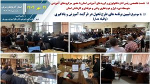 در تاریخ ۲۱ مهر ۱۴۰۴ روز دوشنبه نشست تخصصی رئیس اداره تکنولوژی و گروه های آموزشی استان با حضور سرگروههای آموزشی متوسطه دوره اول و دوم نظری و فنی و حرفهای و کاردانش استان و با موضوع: تبیین برنامه های طرح تحول در فرآیند آموزش و یادگیری در گروه های آموزشی اداره کل آموزش و پرورش برگزار گردید که گزارش تصویری آن در ادامه آمده است.